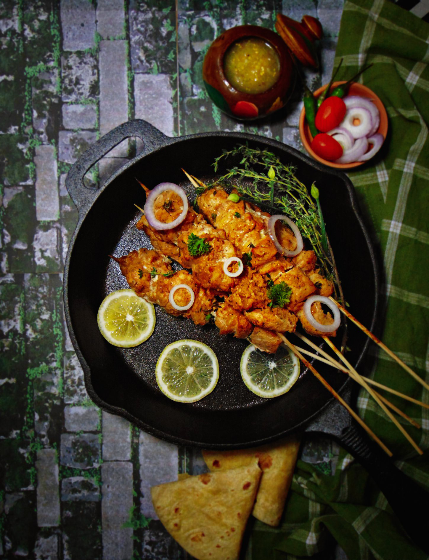 এবার শাসলিক স্টিকে চিকেন টুকরাগুলোতে গেঁথে নিয়ে ৩৭৫ ডিগ্রী ফারেনহাইটে প্রি হিটেড ওভেনে ১৫ মিনিট বেক করে তারপর হাই হিটে আরও ৭-৮ মিনিট ব্রয়েল করে নিলেই অথবা চুলায় গ্রিল প্যানে ভেজে নিলেই তৈরি মজাদার চিকেন কাবাব।