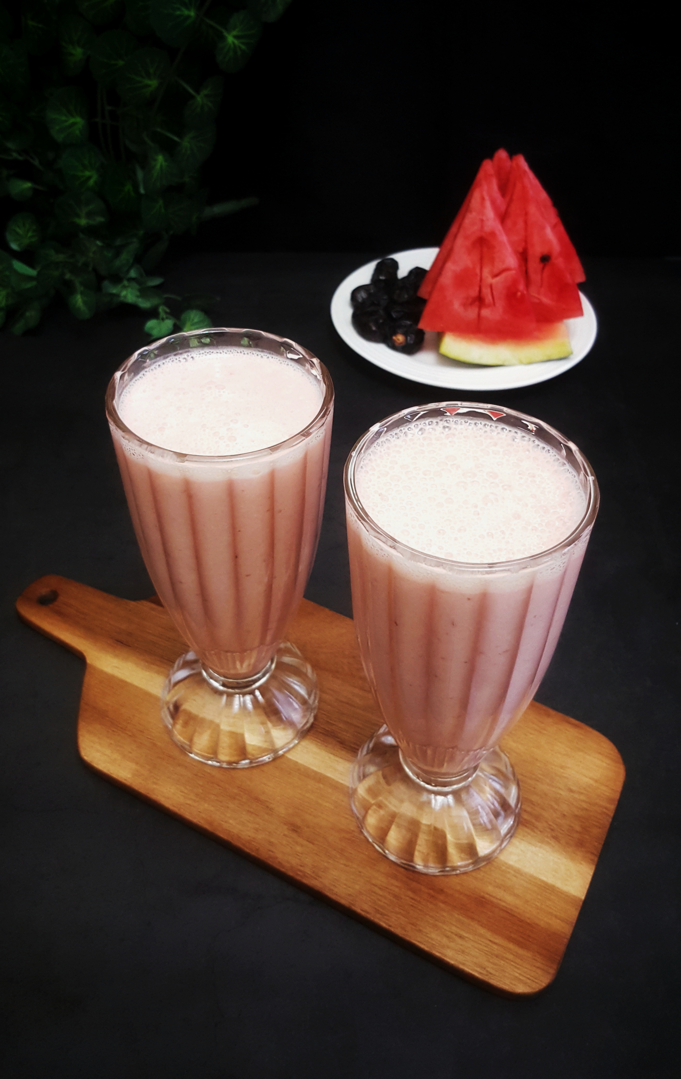 তৈরি করার নিয়মঃ প্রথমে তরমুজ এবং খেজুরের বিচি ফেলে দিন। তারপর ব্লেন্ডারের জারে উপরের সব উপকরণ একসঙ্গে মিশিয়ে ব্লেন্ড করে নিলেই হয়ে গেল মজার তরমুজ এবং খেজুরের লাচ্ছি। এখন একটি গ্লাসে ঢেলে ঠান্ডা ঠান্ডা পরিবেশন করুন।