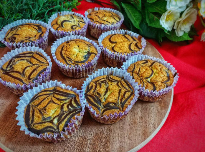 কাপ কেক মোল্ডে পরিমাণ মতো ব্যাটার দিয়ে হালকা ট্যাভ করে সমান করে দিন যেন কেকের ভিতর কোন বাতাস থাকলে বের হয়ে যায়। তারপর ককো পাউডারের মিশ্রণ থেকে উপরে নিজের ইচ্ছে মতো সাজিয়ে নিন। ১৮০ ডিগ্রি সেলসিয়াসে ২০-২৫ মিনিট বেক করুন। হয়ে গেলে একটা তুথপিক ঢুকিয়ে চেক করে নিন। তুথপিক পরিষ্কার হয়ে বের হলে কেক তৈরি।