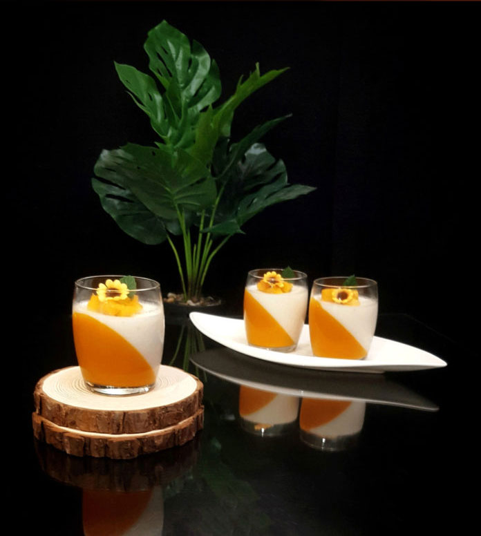 দুধ একটু ঘন হয়ে আসলে ভ্যানিলা এসেন্স দিয়ে একটু নেড়ে চুলা বন্ধ করে নামিয়ে একটু ঠান্ডা করে নিন। এখন নরমাল ফ্রিজে রাখা গ্লাস বের করে মোল্ড থেকে উঠিয়ে সোজা ভাবে রেখে গ্লাসে দুধ-ক্রিমের মিশ্রণটি ধীরে ধীরে ঢেলে গ্লাসটি আবার দুই ঘণ্টার জন্য নরমাল ফ্রিজে রেখে দিতে হবে ভালোভাবে সেট হওয়ার জন্য। দুই ঘন্টা পর গ্লাস নরমাল ফ্রিজ থেকে নামিয়ে উপরে কিছু আমের ছোট ছোট টুকরা দিয়ে পরিবেশন করুন মজাদার ম্যাংগো পান্না কোট্টা। এই পরিমাপে আমার মাঝারি তিন গ্লাস পান্না কোট্টা হয়েছে।